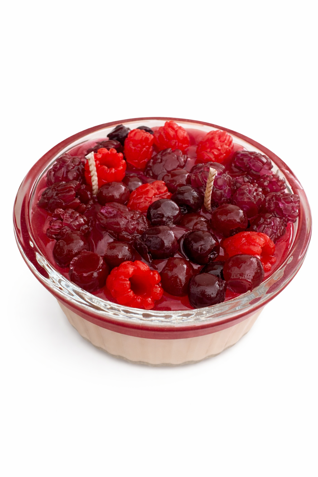 Στην κορυφή, μια εντυπωσιακή στρώση από κερί τζελ με αληθοφανή κόκκινα φρούτα και «μαρμελάδα», που χαρίζει ένταση και φρεσκάδα με άρωμα κόκκινων φρούτων.